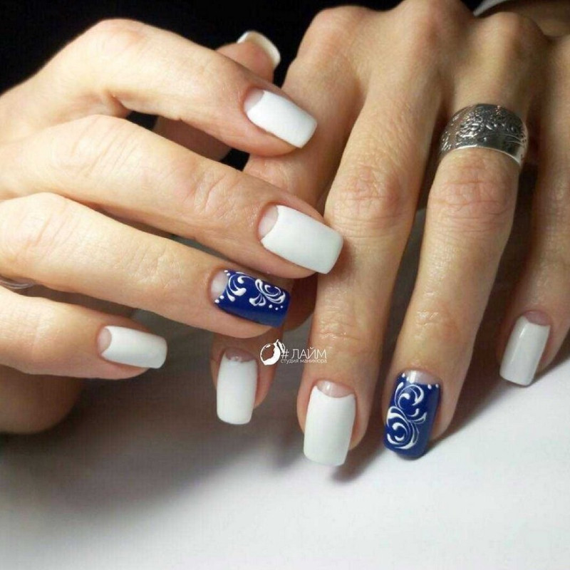 Белый маникюр наиболее выгодно смотрится с контрастными цветами: красный, черный, ярко-синий. А вообще к нему можно подобрать абсолютно любой оттенок, который будет выглядеть гармонично.