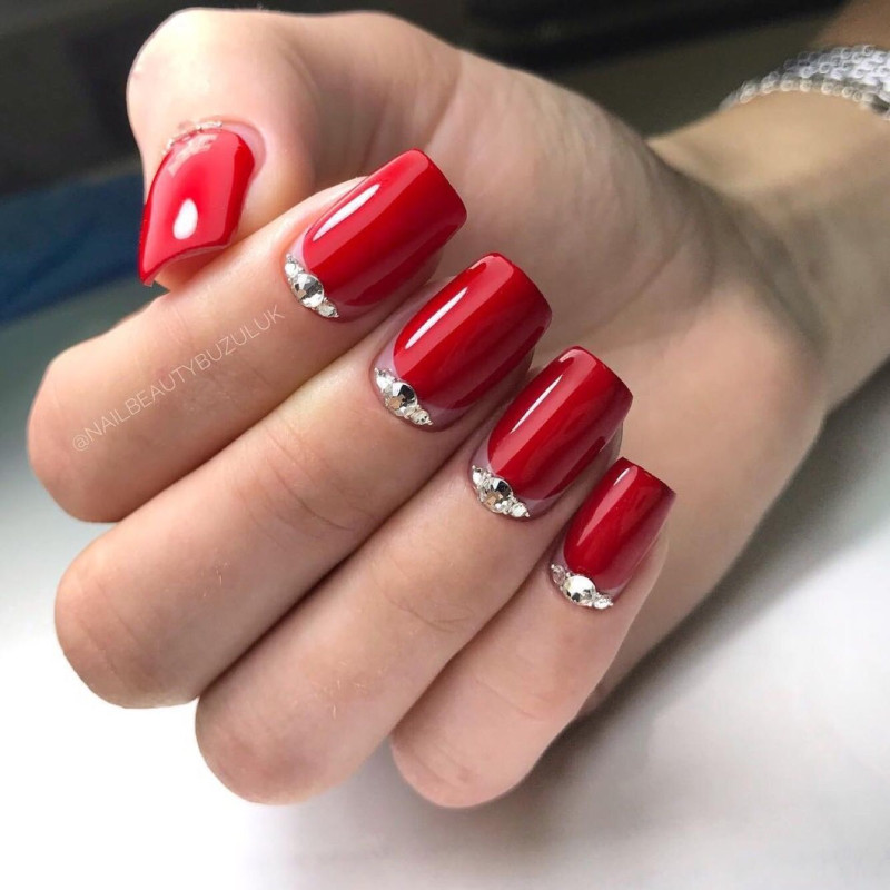 К классическим относятся любые сочетания с красным. Это может быть монохром, когда используют лаки нескольких оттенков, к примеру, темный бордовый с алой лункой.
