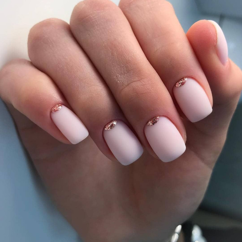Нейл-арт в мягком розовом цвете смотрится изысканно и элегантно, прекрасно вписывается как в повседневный, так и торжественный образ, например, свадебный. Он особенно подходит длинным овальным ногтям.