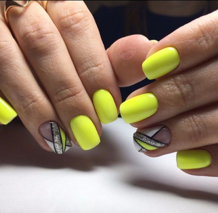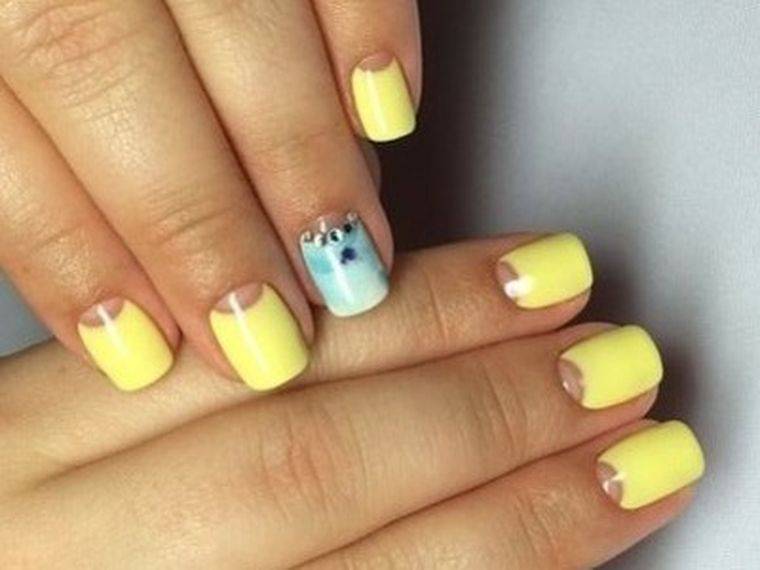 Желтый яркий теплый цвет сочетается с большинством оттенков и придает маникюру яркости, праздничного настроения. Отлично сочетается с цветами пастельного цвета, красным, черным, кофейным, коричневым, зеленым, синим.