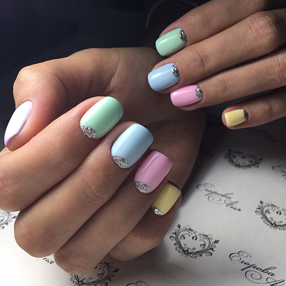 Можно использовать не только оттенки одного цвета, но и контрастные палитры. Тогда получится очень красивый и милый нейл-арт. Но при этом нужно отметить, что однотонное омбре выглядит более эффектно, чем разноцветное.