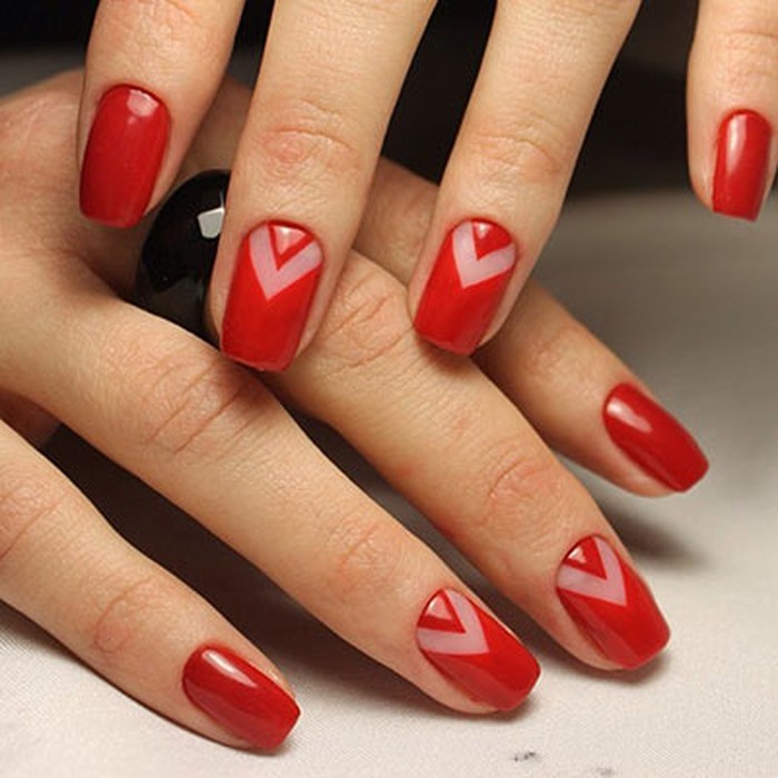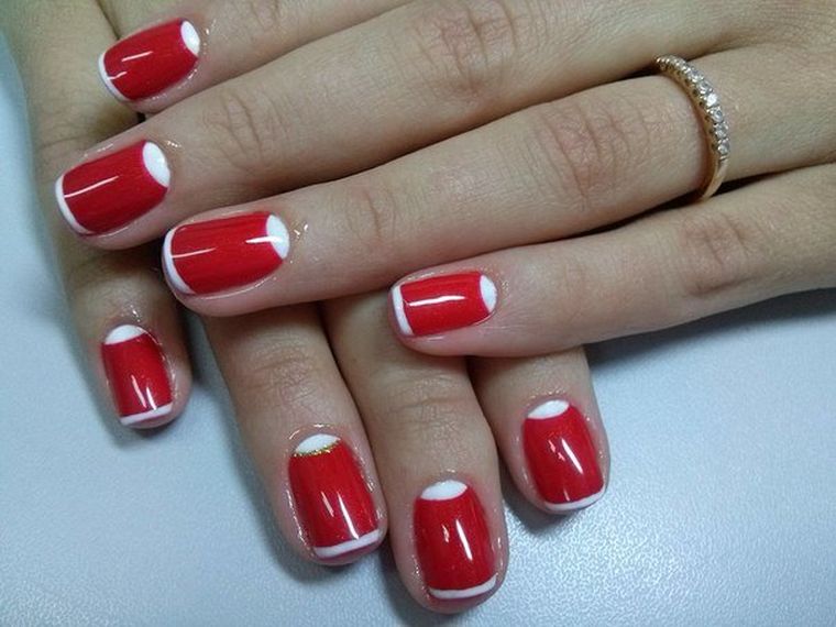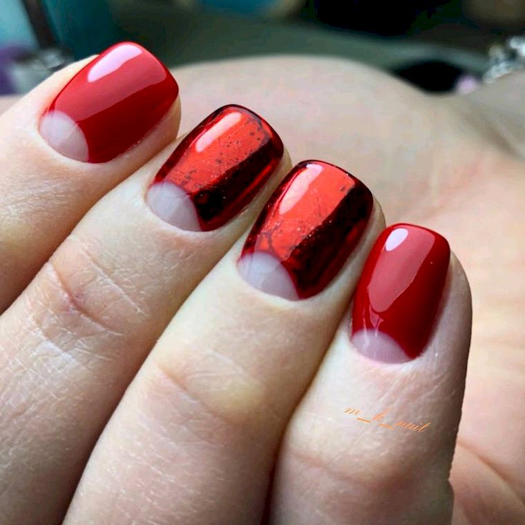 К классическим относятся любые сочетания с красным. Это может быть монохром, когда используют лаки нескольких оттенков, к примеру, темный бордовый с алой лункой.