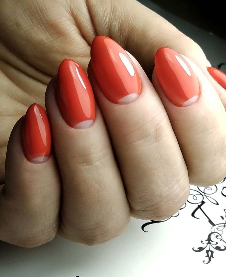Ногти овальной формы прекрасно подчеркнут вашу женственность и элегантность, также они визуально удлиняют любые ногти. Лунный же маникюр на таких ногтях добавит в ваш образ нотку непринужденности. Лучше всего выбирать лунный нейл-арт с матовой поверхностью или натуральных оттенков. Также на таких ногтях прекрасно смотрится лунный дизайн в сочетании с негативным пространством. Лунку здесь обычно оставляют прозрачной. Можно сделать прозрачную грань между лункой и окрашенной зоной ногтевой пластины.