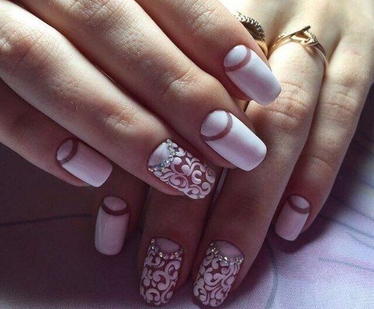 К классике относится нейл-арт, выполненный в нюдовой и розовой гамме. Выбор оттенков огромный: как совсем бледные пастельные тона и «пыльная роза», так и насыщенный лиловый, фуксия.