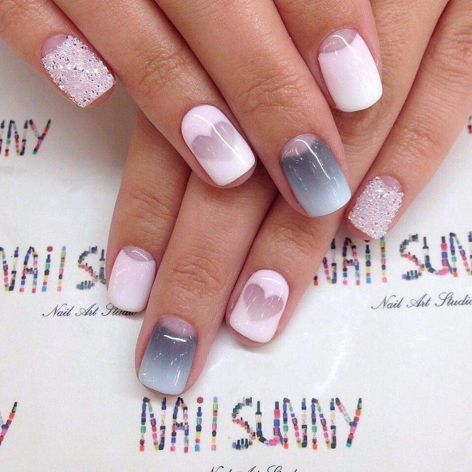 Синий. Все оттенки синего великолепны в техниках омбре и градиент, могут комбинироваться с мятными, розовыми, небесными цветами. Также все указанные оттенки можно чередовать на разных пальчиках. Нейл-арт синего оттенка делают с лунулами, выкрашенными белым, серебряным, золотым лаком, а также дополняют стразами и втиркой.
