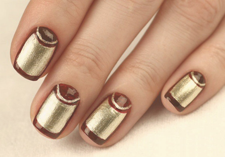 После нужно определиться с комбинацией цветов. Очень красиво выглядят вот такие сочетания: красный-черный, черный-серебро, бежевый-белый, синий-фиолетовый. Отлично выглядят все цвета вместе с золотом. Естественно, перед тем, как делать нейл-арт, нужно определиться с общим образом, чтобы ногти органично вписались в стиль.