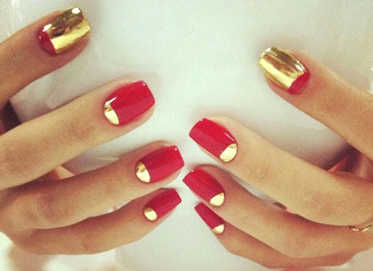 Золотой – это как классика жанра, нет ничего лучше, чем сочетание: золотой-красный, черный-золотой, бело–золотой. Он словно подчеркивает красоту ярких, насыщенных цветов в маникюре.