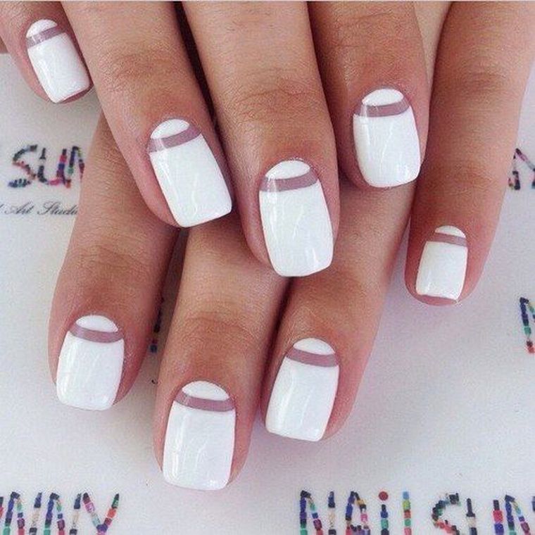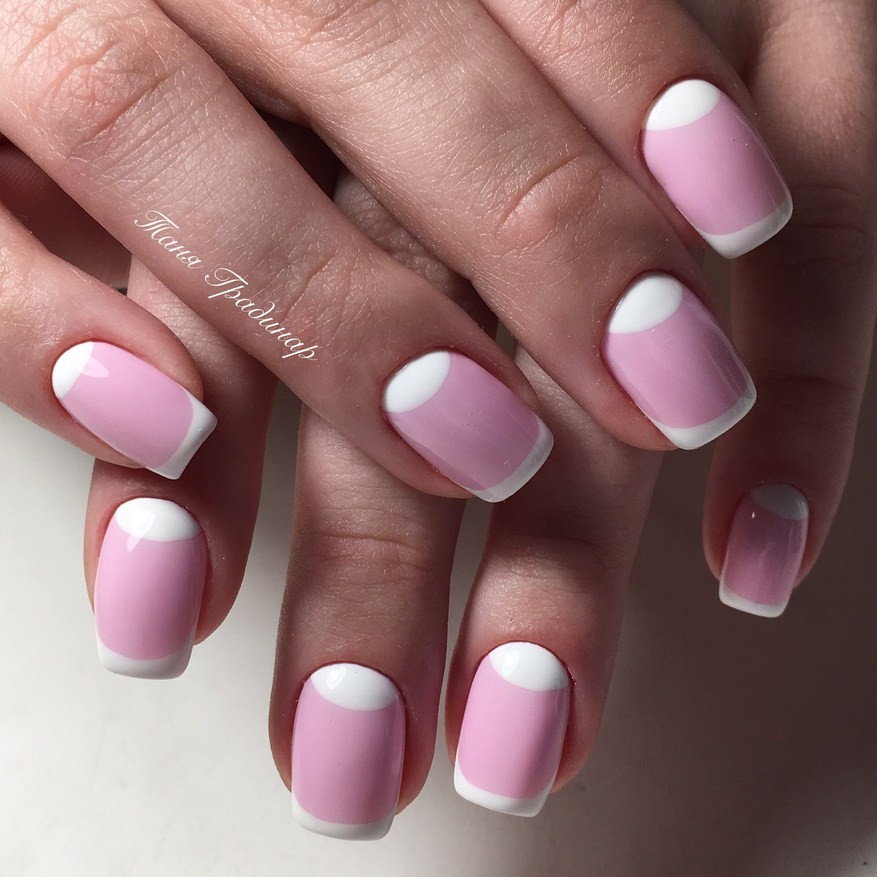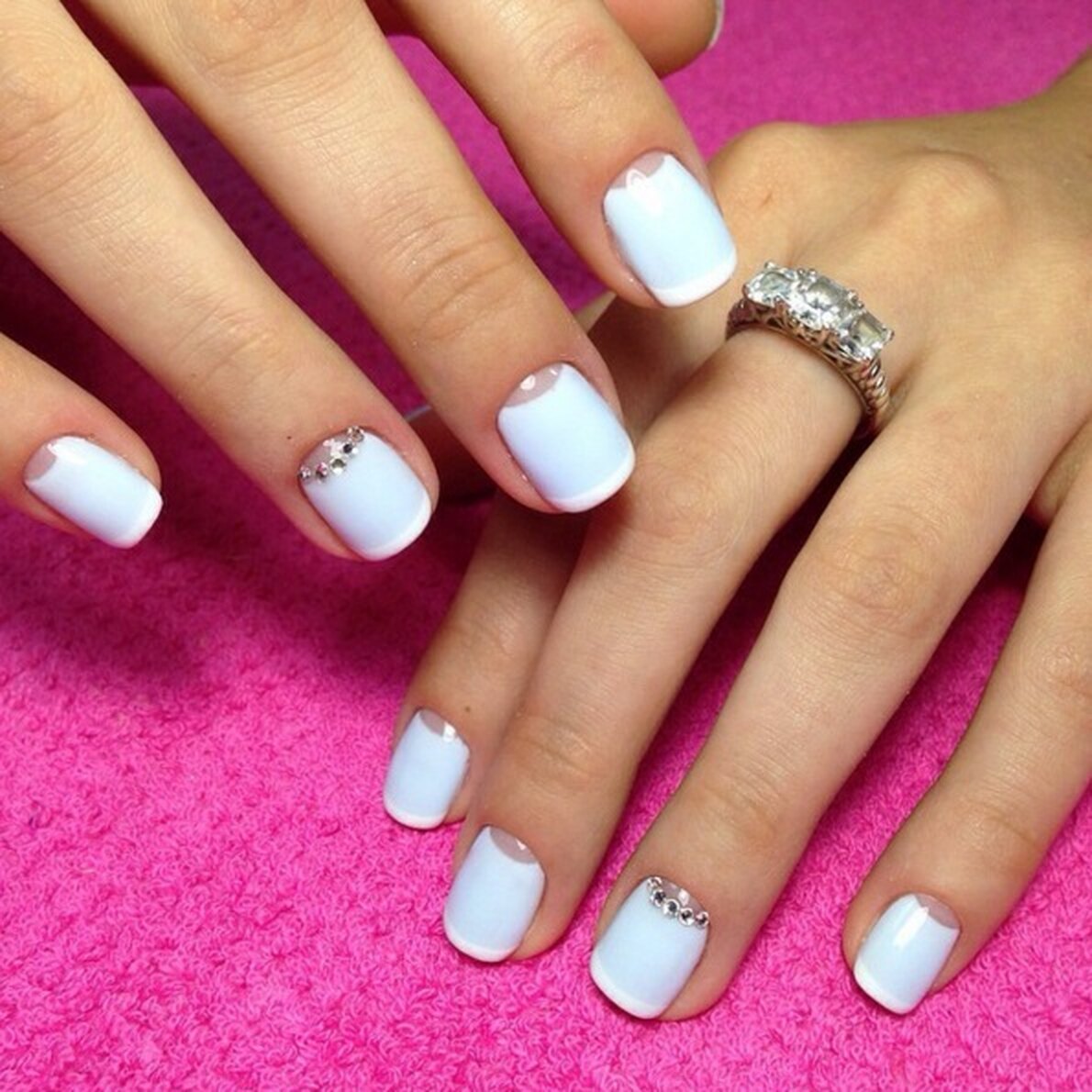 Белый. Этот цвет является нейтральным, ахроматическим, поэтому на его фоне удачно смотрятся все остальные оттенки без исключения. Белые лунки или белые основы ноготка символизируют чистоту и невинность, придают дизайну нежный вид. Также белым можно прорисовать контуры улыбок и лунул в технике двойного френча.