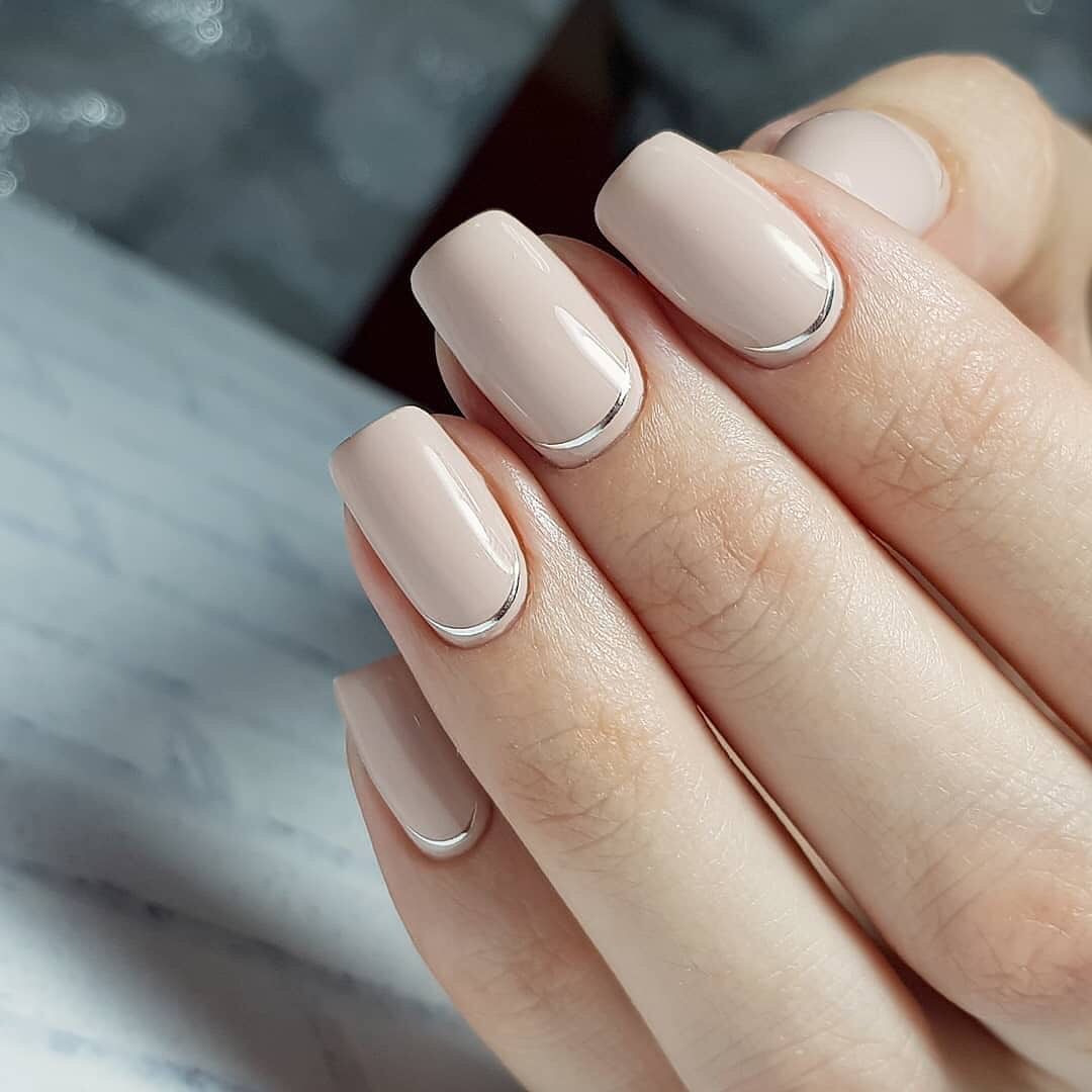 Бежевый. Красивейшие варианты лунного нейл-арта можно создавать с помощью бежевого и других оттенков нюдовой гаммы – от кремового до темно-карамельного. Такой дизайн уместен в офисном стиле, в образе невесты, особенно, с добавлением декора из стразов, камней, втирки, бульонок, блестящих конфетти.