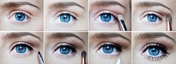 - Для нижней области вашего глаза (то есть только рядом с линией ресниц) – используйте темный оттенок теней для век, для области выше этого используйте средний оттенок, а для верхней-светлый оттенок и хорошо смешайте их.