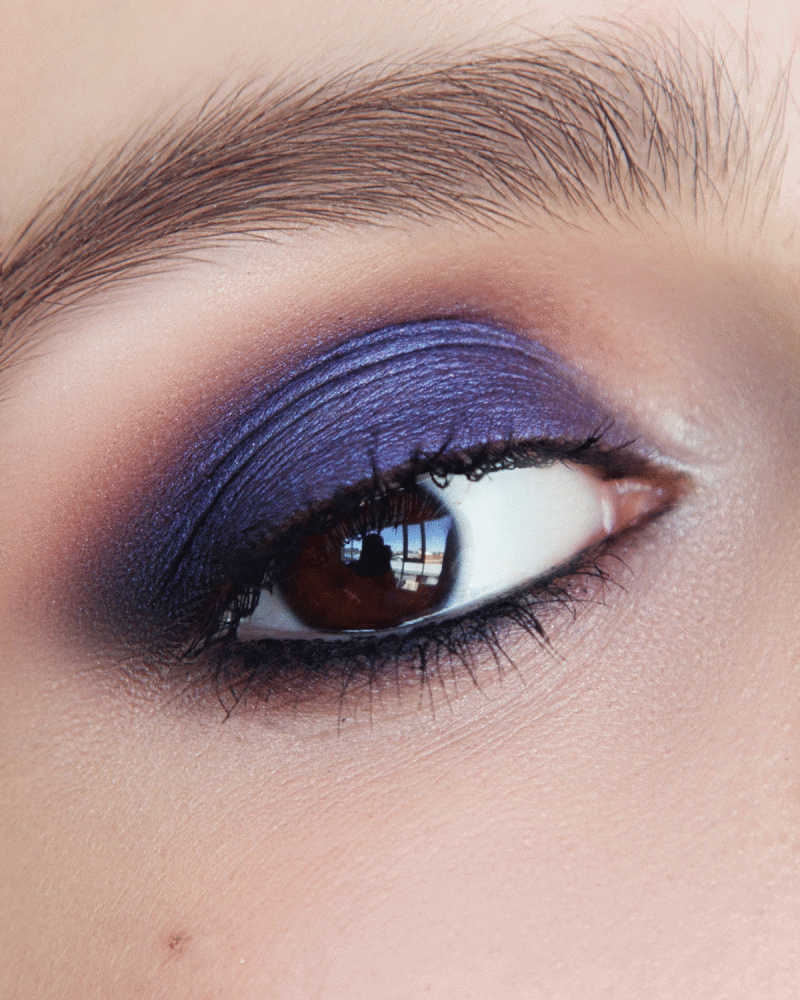 - палитра матовых теней. Наиболее часто применяемые варианты коричневого, черного, антрацитового, темно-бордового, фиолетового или зеленого тона. Но правило, которое требует подбора теней, соответствующих цвету глаз, никто не отменял;