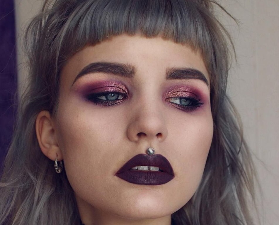 Ну и, конечно, столь смелый макияж подойдет только тем девушкам и женщинам, которые не боятся выделяться из толпы и обожают эпатировать публику. Поскольку она точно не останется равнодушной к такому образу. Маникюр должен быть коротким, идеальный цвет ногтей коричневый, баклажан, черный, слива, марсала (ориентируйтесь также на цвет одежды). Ниспадающие на лицо волосы или торчащие в разные стороны прядки гармонично дополнят общий образ, придав ему нотки протеста против правил и любви к жизни, свободолюбия и стремления к постоянным переворотам. В общем, почему бы и нет!