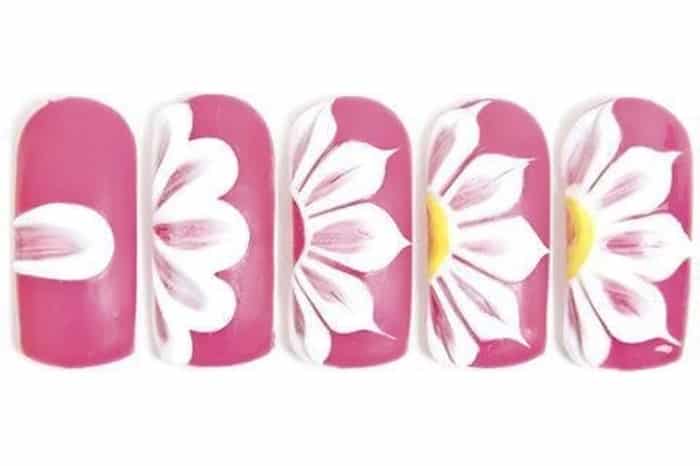 Также акрилом можно сделать френч и оформить его оригинальным флористическим рисунком. Техника росписи акрилом удобна тем, что если узор не получился, то его можно просто смыть водой, пока он не засох и начать роспись сначала.