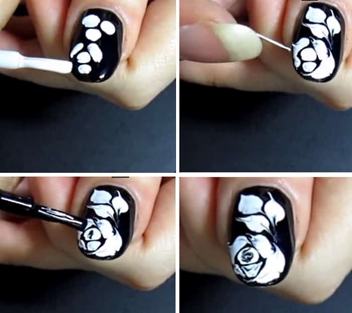 Как и в предыдущих способах декорирования, на ногти нужно нанести основной цвет, а уже после его полного высыхания наносить рисунок. Маникюр будет служить дольше, если покрыть полученный результат закрепителем.