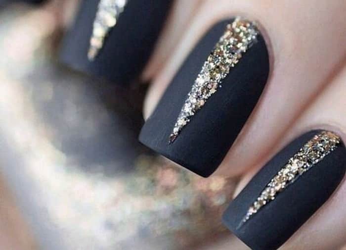 Не менее популярен и черный гель-лак. Он идеально подходит для создания вечернего и праздничного дизайна. Прекрасно сочетается с фольгой, стразами, камифубуки, хлопьями юки и другим блестящим декором.