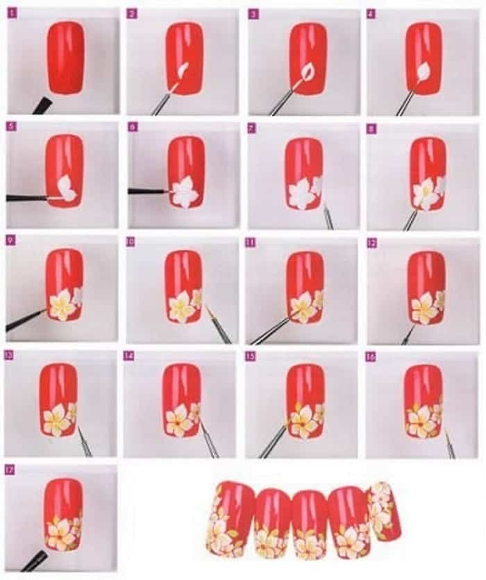 Также акрилом можно сделать френч и оформить его оригинальным флористическим рисунком. Техника росписи акрилом удобна тем, что если узор не получился, то его можно просто смыть водой, пока он не засох и начать роспись сначала.