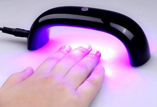 - Наносим базовое средство тонким слоем на четыре пальца, кроме большого. Немедля помещаем их в LED-лампу на 1 минуту.