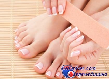 На ногах тоже ногти нуждаются в уходе. Каждую неделю нужно делать педикюр в домашних условиях. Необходимо делать ванночки с солью моря или океана, очень хорошо помогают при слоящихся ногтях ног грязевые ванны или маски из голубой глины.