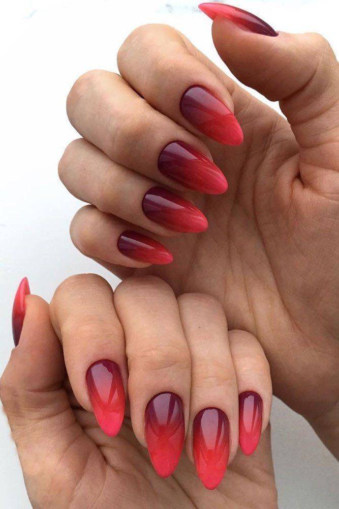 Важно подобрать сочетающиеся между собой цвета, а еще аккуратно выполнить работу. Форма ногтей не имеет большого значения, но длина важна. Градиент лучше делать на длинных ногтях