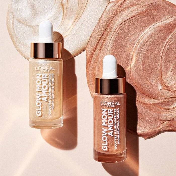Основной косметический продукт, необходимый для создания эффекта сияния на коже — это хайлайтер. Есть сухие и жидкие. Выбираем второй вариант, поскольку он больше подходит для создания нужного глянцевого эффекта на коже. Подходящий продукт есть в брендах L’Oreal Paris, Vivienne Sabo, NYX, Oriflame и т.д.