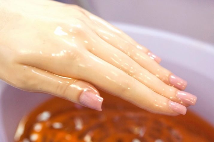 Одним из очень действенных методов по уходу за ногтями считается парафиновая терапия. Для этой процедуры понадобится кусок некрашеного парафина, который нужно растопить при помощи водяной бани. Пальцы опускаются в парафин несколько раз, после этого на кисти рук нужно надеть специальные перчатки и утеплить их полотенцем. Снимать парафиновую маску следует через десять минут. После нее область вокруг ногтей нужно смазать кремом или ухаживающим лосьоном. Парафиновую маску можно делать не только для пальцев, но для всей кисти, — благодаря этому руки будут очень нежными и красивыми.
