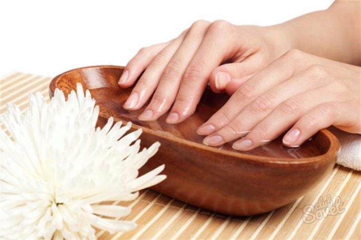 Соединить все компоненты, держать руки в ванночке 15 минут. Можно добавить эфирные масла или заменить воду травяным отваром. Затем руки вытереть насухо, сделать массаж пальцев с питательным кремом.