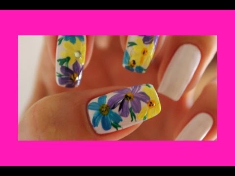 Рисуем на ногтях цветочки акриловой краской / Drawing on the nails flowers acrylic paint