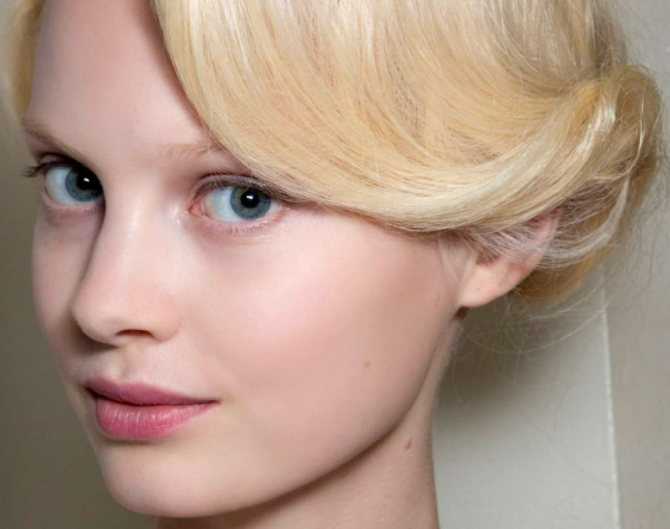 - Губная помада может быть персикового цвета или вовсе заменяется небольшим количеством прозрачного блеска.