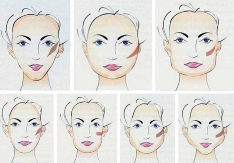 Накладывать румяна нужно в соответствии с формой лица в определённом направлении, как это показано на картинке.
