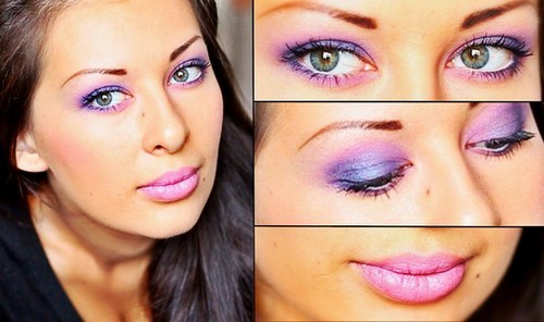 Для дневного макияжа используются тени светлых оттенков или тушь либо их совокупность. Вечерний мейкап трудно представить без изящных стрелок и сверкающих страз. Чистое веко покрывается базой под тени. Маленькой тонкой кистью светлые тени наносятся на внутренний уголок глаза, тёмные — на внешний. Для обеспечения плавного перехода границы оттенков растушёвываются. Затем подводкой создаётся стрелка для подчёркивания роста ресниц. Последний шаг — прокрашивание ресниц тушью. Для придания красивой формы бровям карандашом или тенями соответствующего оттенка, близкого к натуральному, нужно подвести изгиб и кончик, поскольку эти части должны быть чёткими и ярко выраженными. На основной части брови растушевать выбранное средство. Закрепить результат гелем. Для того чтобы сделать взгляд открытым и выразительным кончик и изгиб брови нужно сделать немного приподнятыми. Оттенок помады должен соответствовать цветотипу. Так, обладательницам светлой кожи лучше отдать предпочтение розовым, лиловым и ягодным цветам. Смуглым и рыжеволосым девушкам лучше всего подойдут персиковые, терракотовые и коралловые оттенки. Первым на губы наносится бальзам, излишки которого убираются салфеткой. Карандашом, соответствующим оттенку помады, очёркивается контур, затем он растушёвывается. После этого — помада и, по желанию, блеск.