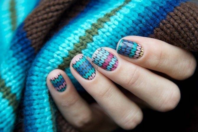- Если вы хотите многослойный маникюр на основе трех цветов, трафареты необходимо наклеить вновь только на другом месте и накрасить ногти цветным лаком.