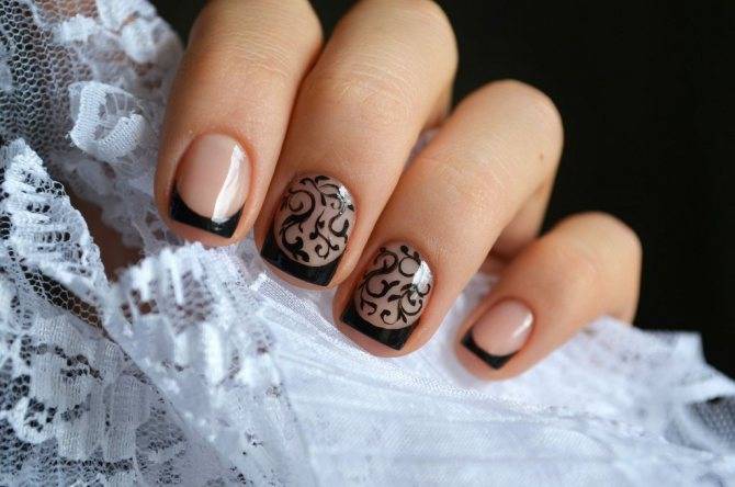 Рисунки в виде вензелей гель-лаком на френче, фото