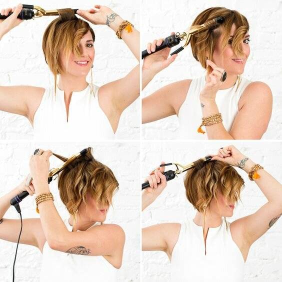 Стильные, элегантные волны или весёлые, задорные завитки — даже короткая стрижка оставляет поле для экспериментов с прической. Главное отличие при накручивании — пряди нужно брать тоньше, чем в случае со средними и длинными локонами: не более 1 сантиметра. Но и слишком узкие тоже не годятся, потому что можно легко пересушить и испортить шевелюру.