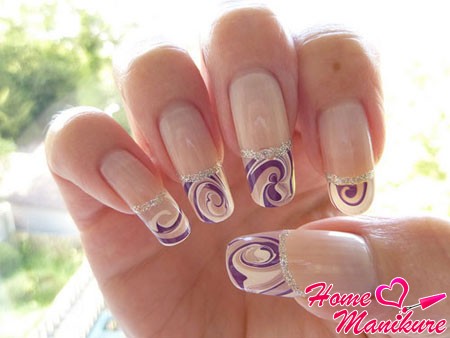Делая маникюр, вы можете не ограничиваться лишь лаками. Пока узор подсыхает, украсьте ноготки стразами. Подчеркните волнующие изгибы россыпью блесток. Вы даже можете сделать необычный френч, окунув в воду только свободный край ноготка. Линию улыбки украсит сверкающий лак. Взгляните, какие головокружительные композиции представлены на фото.