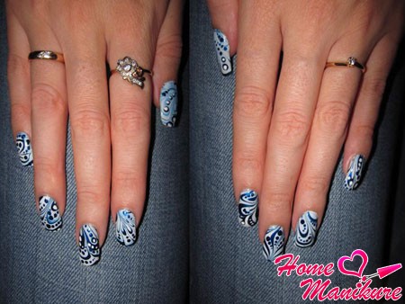 - Не стоит переживать, если не получается идентичных рисунков на ногтях. Смысл водного дизайна в том, что все узоры выполнены в одном стиле, но отличаются друг от друга.