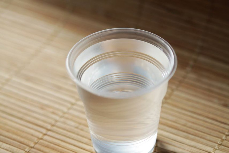 Поставьте перед собой емкость с водой. Подойдет обычный пластиковый стакан
