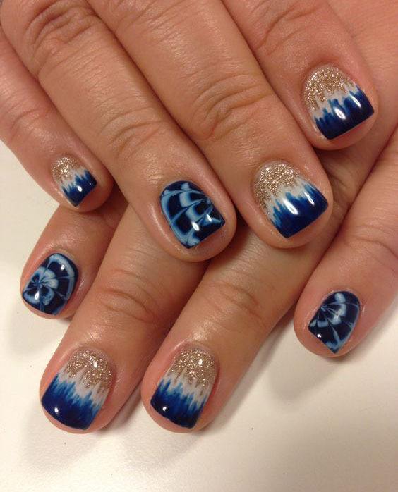 Если наловчиться, получится сымитировать рисунок натурального мрамора. Не менее удивителен эффект tie dye, позаимствованный из текстильной отрасли. Это так называемый узелковый батик или окрашивание тканей с получением оригинального узора. Только с материей работают, завязывая на ней узелки, а у водного маникюра есть свои тонкости и уловки.