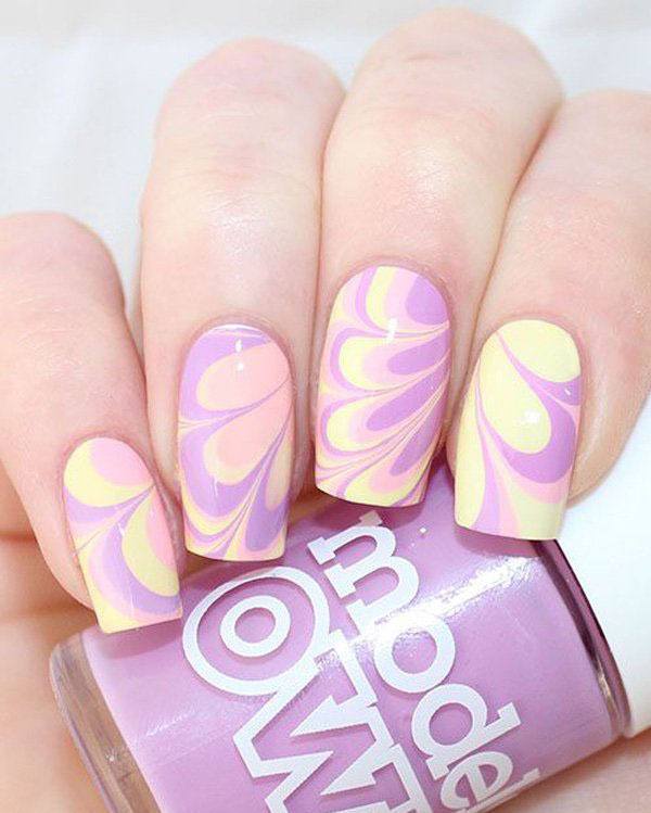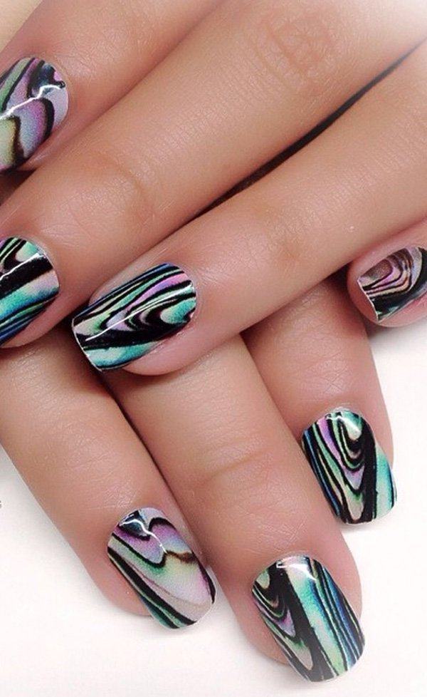Профессионалы в области маникюра не перестают нас удивлять новыми идеями по созданию мраморного маникюра. Дизайны водного нейл-арта вы можете выбрать на любой вкус и цвет!