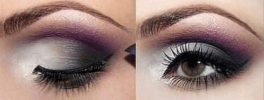 Рассмотрим вариант макияжа фиолетового оттенка: