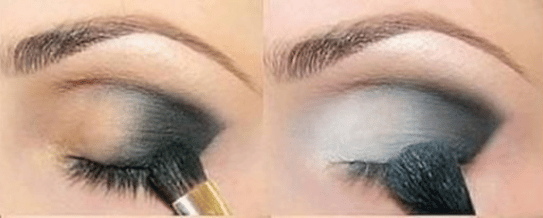 Нанесите на наружный край верхнего века с помощью широкой и плоской кисти тени тёмно-синего или тёмно-серого оттенка, а на внутренний край жемчужные, светло-серые или светло-голубые.