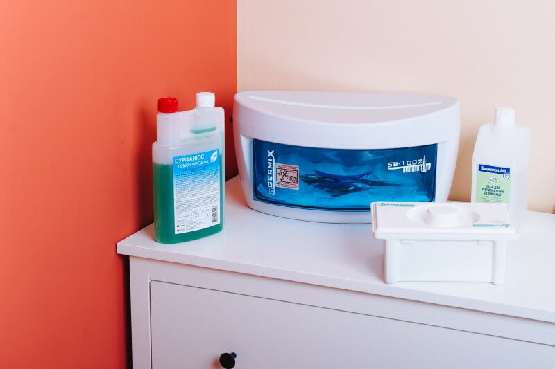 По правилам СанПиН, после каждого клиента обязательна дезинфицирующая обработка всех поверхностей и емкостей многоразового использования дезинфицирующими средствами, с последующей стерилизацией маникюрного инструментария.