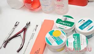 - средство, которым размягчают кутикулу и другие принадлежности для маникюра – апельсиновые палочки и ножнички;