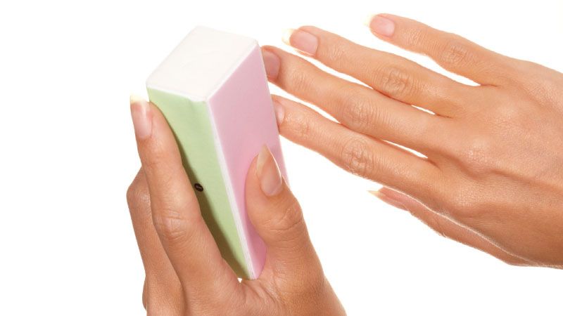 - Используйте пилочку для ногтей, чтобы тщательно отшлифовать акрил. Будьте предельно осторожны, снимая верхний слой акриловых ногтей.
