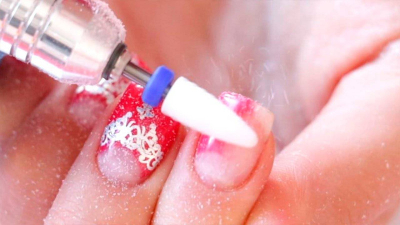 Насадка грубой абразивности способна удалить свободный край, а также снять искусственно наращенное покрытие. Однако без применения дисков и специального средства для снятия акрила не обойтись. Они нужны для завершающего этапа, когда на поверхности после работы фрезы остаётся тонкий слой материала, который следует удалить. Действовать нужно аналогичным способом, путем отмачивания остатков акрила. После вычищать с помощью палочки.