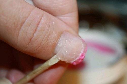 Помимо этого, важным моментом является само удаление акрила палочкой. Мастера, конечно, используют металлический пушер. Специалисты контролируют силу давления инструмента, поэтому не повреждают ногтевую пластину в процессе снятия. Новичкам лучше воспользоваться палочкой. Она менее вредна по отношению к натуральному ногтю.
