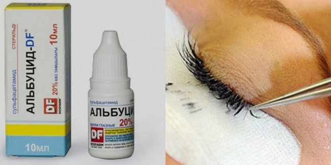 Лекарственная жидкость, применяемая при лечении воспалений конъюнктивы. Специалисты считают, что действие этого препарата сомнительно, так как он довольно жесткий. Кто и когда первый заметил о его способности растворять клей, остается загадкой. Наверное, это была модница, лечившая «Альбуцидом» конъюнктивит, в то время когда ее глаза украшали искусственные реснички.