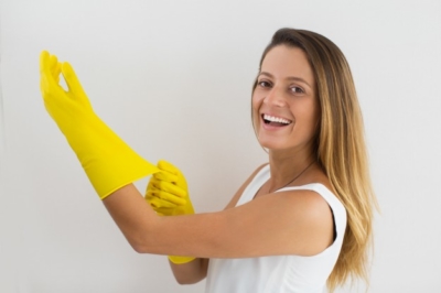 Если вам неудобно работать в обычных перчатках, можно сделать перчатки искусственные. Для этого в 1/4 стакана воды добавьте капельку желатина, капельку борной кислоты и половину столовой ложки крахмала. Помажьте руки приготовленной смесью, дождитесь, пока она высохнет, и можно начинать работу.