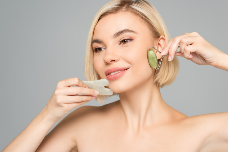 - Гуаша. Усиливает лимфоток и кровоток, что приводит к выравниванию цвета кожи. Мышцы, которые находятся в гипертонусе, расслабляются, складки и заломы сглаживаются. При регулярном использовании данной методики пропадает второй подбородок, овал лица подтягивается, линии становятся более четкими, пропадают отеки, улучшается состояние кожи.