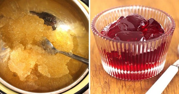 В четверть стакана воды, имеющей комнатную температуру, поместите ложку столовую желатина, размешайте и оставьте минут на тридцать.