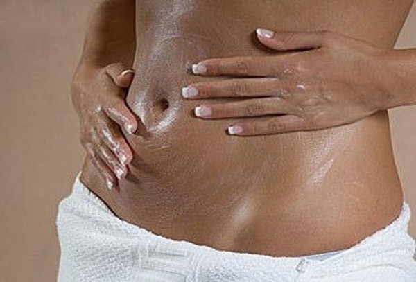 Причем увлажнять ее нужно и снаружи, и изнутри. Не забывайте пить воду, чаще ешьте продукты, богатые витаминами С, А, D, Е, белком. После душа наносите на кожу разные питательные масла, особенно на живот, грудь, бедра. Подойдет персиковое масло, оливковое, кокосовое, масло зародышей пшеницы. Можно использовать специальные кремы от растяжек. Эффективнее всего наносить масла на влажную кожу массажными движениями. Следите за массой тела. Жесткая диета вам ни к чему, но и есть все подряд и в больших количествах тоже не надо